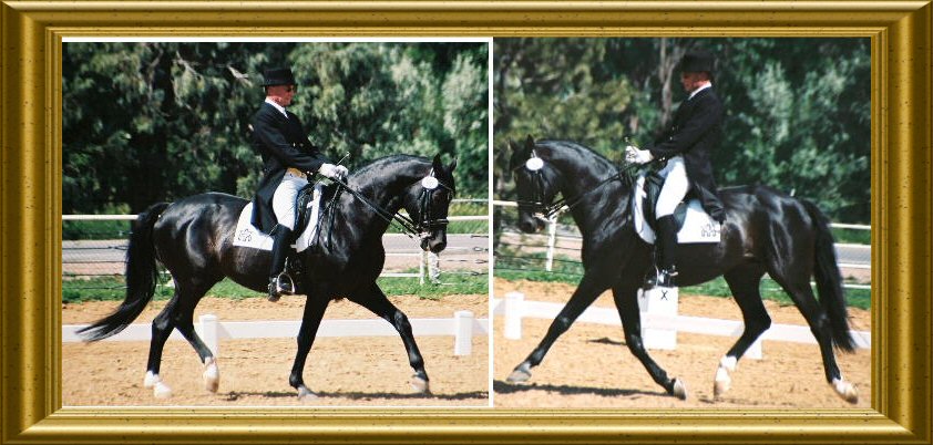 MEISTERWIND WON NUMEROUS AWARDS BOTH REGIONALLY AND NATIONALLY, INCLUDING THE AMERICAN TRAKEHNER ASSOCIATION PRIX ST. GEORGES HORSE OF THE YEAR, 1999, AND INTERMEDIARE 1 HORSE OF THE YEAR IN 2004.ADDITIONALLY, CRAIG HECKERT, RIDING MEISTERWIND, EARNED ALL THE SCORES FOR THE UNITED STATES DRESSAGE FEDERATION BRONZE AND SILVER, AND GOLD MEDALS!MEISTERWIND ALSO EARNED THE PRIX ST. GEORGES AND INTERMEDIARE 1 PERFORMANCE CERTIFICATE FROM THE USDF AS WELL.Meisterwind's sire, "DONAUWIND", is one of the most influential sires in modern Sport Horse breeding. "DONAUWIND" is the sire of numerous champions including "ABDULLAH", Olympic, World Champion and World Cup Gold Medalist. Meisterwinds dam, "MAGISSA", is also the dam of the approved Hannoverian Stallion "DANTE" and champion Hanoverian mare "DIVINA". "MAGISSA" is by "MAHAGONI" who is the sire of "PERON", Grand Prix Dressage Champion and Olympic Bronze! "MAGISSA'S" dam is a daughter of "HABICHT" one of the most sought after bloodlines in Germany and the sire of "WINDFALL" and "SIXTUS" Meisterwind was a leading sire of over 50% GOLD MEDAL PREMIUM foals, many who have gone on to successful careers in Dressage, Hunters, Jumpers and Eventing. The Meisterwind offspring are sound, sane and RIDEABLE for all levels of riders. He has been so impressive as a sire that in 2002 we were asked if we would consider leasing Meisterwind to stand at stud in GERMANY. What a compliment to Meisterwind! We could not bear to part with him and made the decision to keep him in the US. We have many of his daughters in our program and they are producing incredible offspring.
