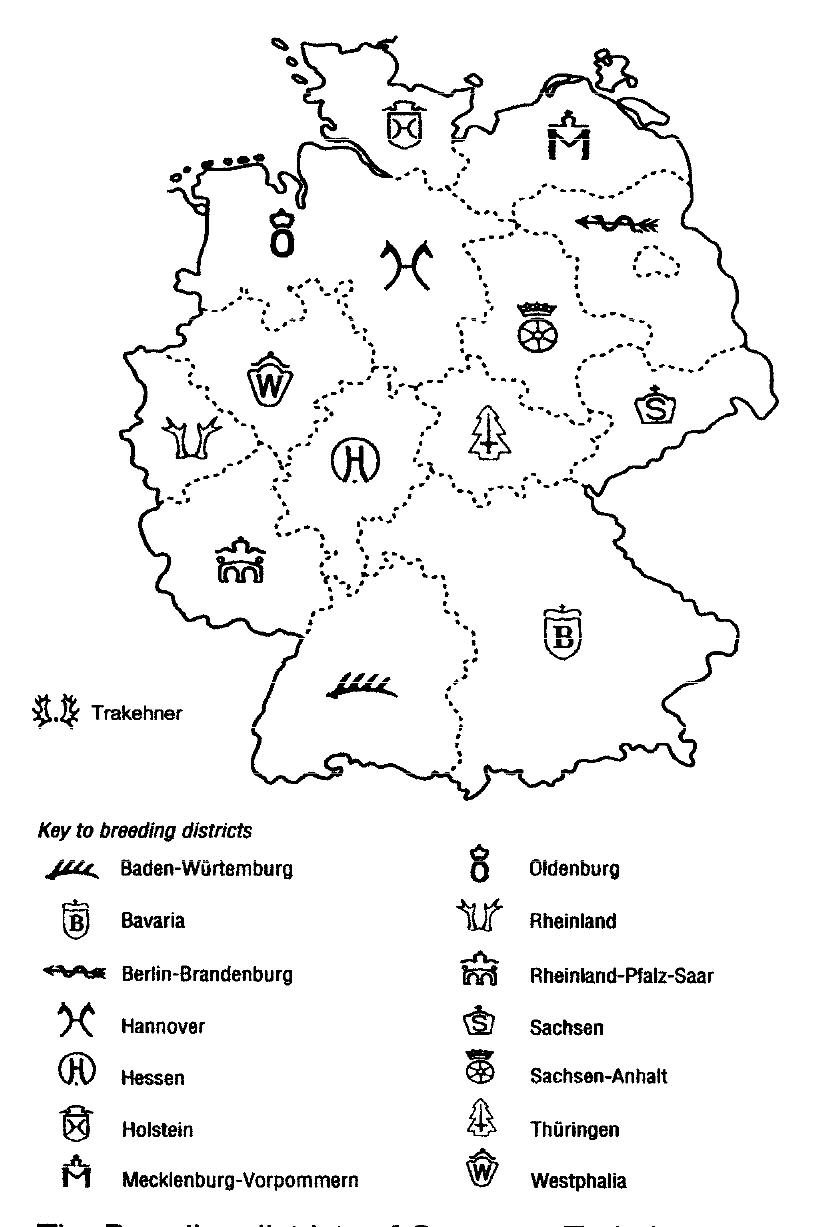 Germany is split into breeding regions and the foals are branded according to where they are foaled. The exception is the Trakehner, which is considered a “pure” breed and branded a Trakehner, regardless of where he is foaled. In addition most European countries have their own “Warmblood” breed as well.
